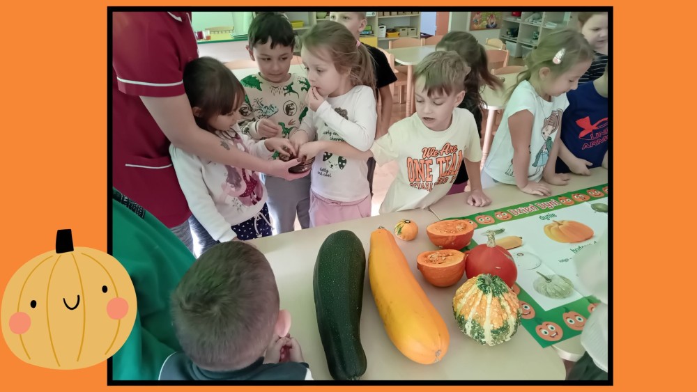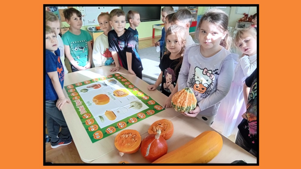 06 lis2025 0 Dzień Dyni – Pszczółki Galeria wydarzeń „Dynia, dynia jest pękata w witaminy przebogata”. W „Dzień Dyni” dzieci z grupy Pszczółek poznały bardzo zdrowe i urodziwe warzywo jakim jest dynia.