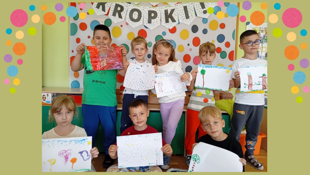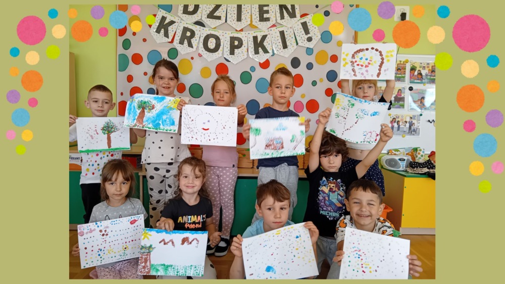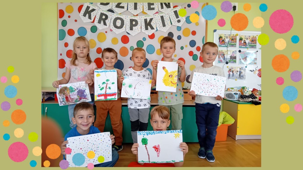 15 września obchodzimy Międzynarodowy Dzień Kropki. Nasze przedszkole również obchodziło to święto.Ten dzień pozwala nam nauczycielom, jeszcze bardziej pobudzić dziecięcą wyobraźnię i kreatywność. Stwarza możliwość odkrywania ukrytych talentów naszych przedszkolaków, ale przede wszystkim daje dobrą zabawę. Podczas zajęć dzieci zapoznały się z geneza tego święta. Wysłuchały opowiadania, jak to mała, zwyczajna kropka zmieniła świat i życie małej dziewczynki o imieniu Vashti. Ta niezwykła historia uświadomiła maluchom, że każdy człowiek – mały i duży ma swoją wartość i ma jakieś ukryte talenty. Tego dnia nasze zabawy wypełnione były kolorowymi kropkami. Kropki również pojawiły się na ubraniach dzieci. Poza liczeniem kropek, zabawami ruchowymi i tanecznymi przedszkolaki wykonały prace plastyczne, oczywiście z kropką w roli głównej.