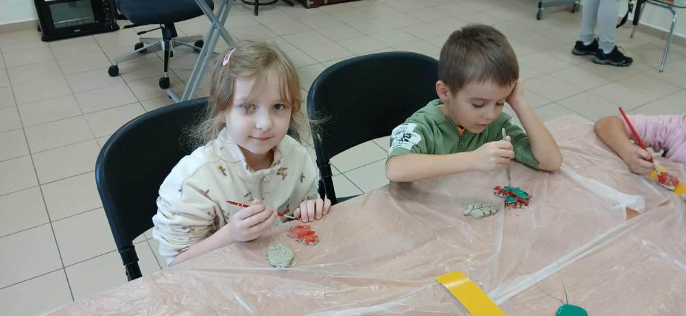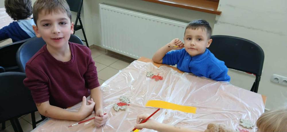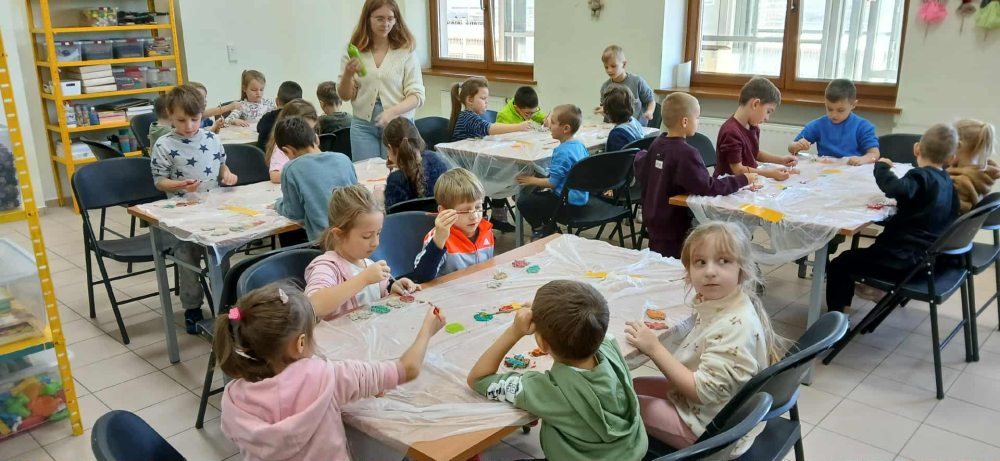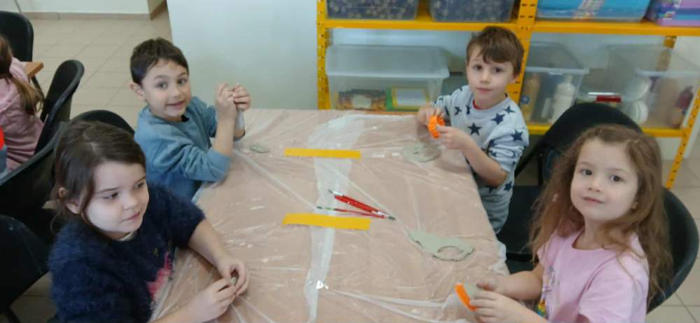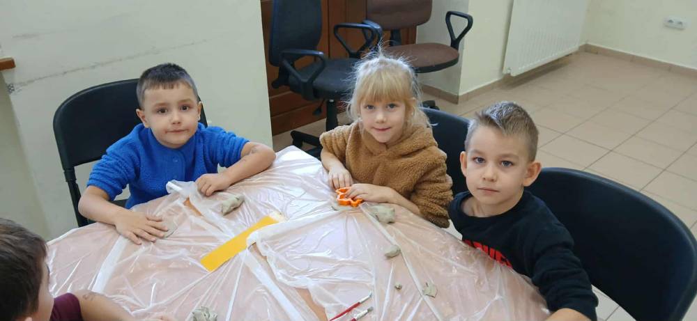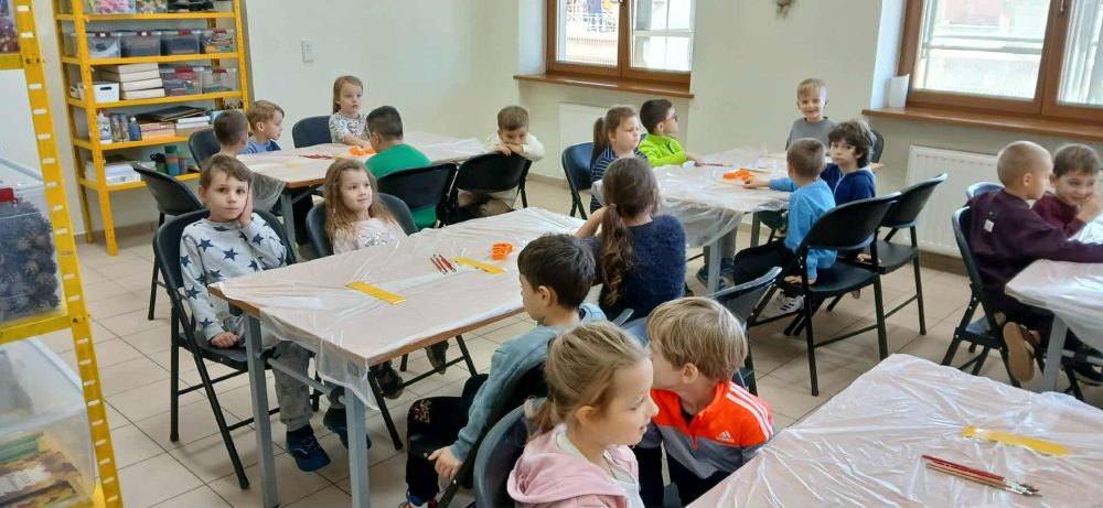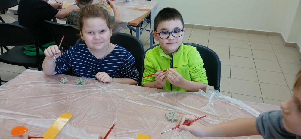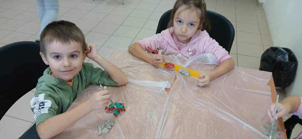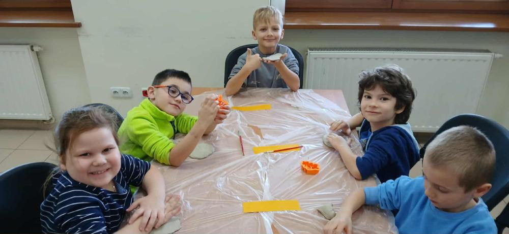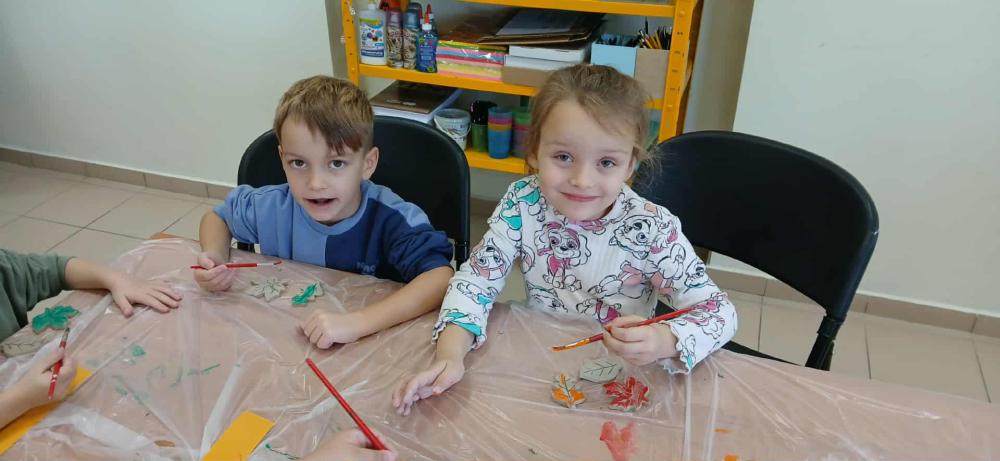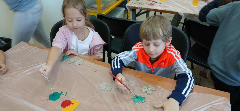 Na podstawie obrazów ze zbiorów tarnowskiego Muzeum dzieci obserwowały przeobrażenia, jakie następują w przyrodzie w związku ze zmianą pór roku. Podczas zajęć plastycznych tworzyły liście z gliny, a następnie dekorowały je farbami akrylowymi.