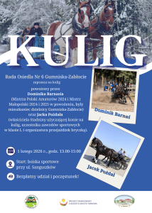 Rada Osiedla Nr 6 „Gumniska-Zabłocie” w Tarnowie zaprasza do wspólnej zabawy w ramach zimowego kuligu. Wydarzenie odbędzie się w niedzielę 1 lutego. Początek na terenie boisk sportowych mieszczących się przy ulicy Sanguszków (za Zespołem Szkół Ekonomiczno-Ogrodniczych).  Jak informuje organizator, uczestnicy powinni zabrać ze sobą sanki i ciepłą odzież. Pomocna będzie także szczypta dobrego humoru.