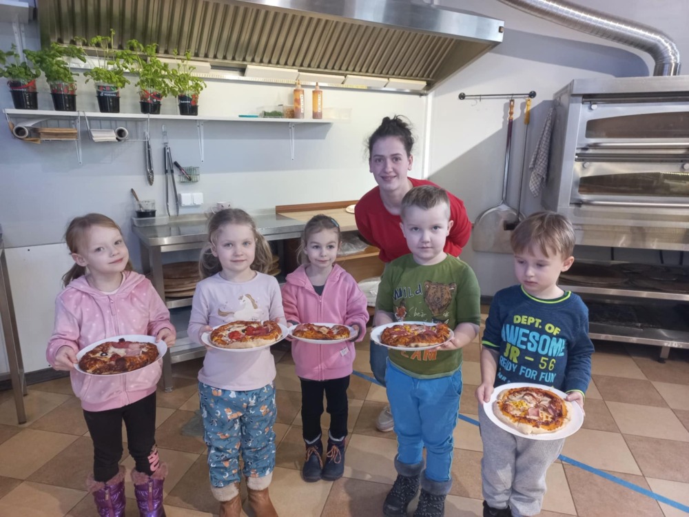 Międzynarodowy Dzień Pizzy u Biedronek trwa bardzo długo. Kiedyś przygotowywały papierową pizzę a dziś przyszedł czas na prawdziwą. Działo się to w pizzerii „Bujani” podczas warsztatów gdzie pod czujnym okiem wspaniałych cioć każdy mógł przygotować ciasto, wybrać składniki na pizzę no i oczywiście ją zjeść. Było wesoło, radośnie i…. pysznie. Dodatkową atrakcją była iguana, która wpadła z wizytą. Niestety pizzy nie chciała ![]()