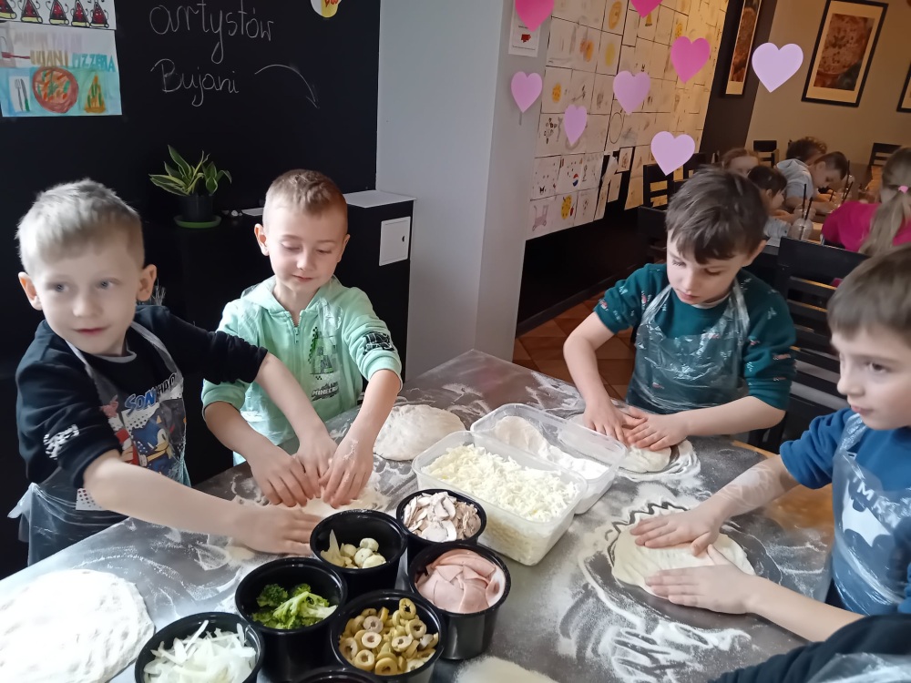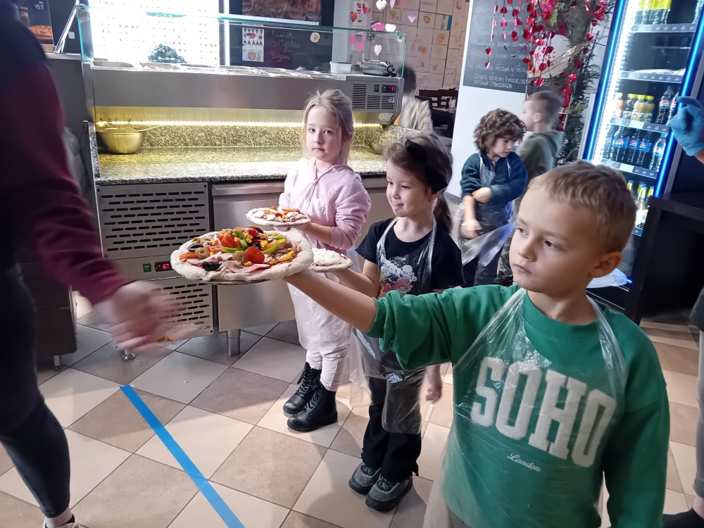 Dzieci z grupy Pszczółek wzięły udział w warsztatach robienia pizzy w Pizzerii Bujani. Podczas zajęć starszaki poznały tajniki przygotowania pysznej i zdrowej pizzy. Własnoręcznie wyrabiały ciasto i dobierały ulubione składniki i oczywiście każdy przedszkolak mógł delektować się swoją własnoręcznie przygotowaną pizzą. Ale na tym nie koniec