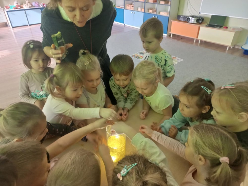 W ramach realizacji projektu „Czuciaki” Biedronki tym razem zawitały na wyspę zdziwienia, gdzie czekał już na dzieci Pan Łał. Pan Łał wyjaśnił, że zaskoczenie może być zarówno radosne jak i może być rozczarowaniem. Zarówno jedno jak i drugie jest ważne bo nas buduje. Dzieci wykonały magiczne eksperymenty z efektem wow, wykolorowały portret Pana Łał i umieściły go na jego wyspie.