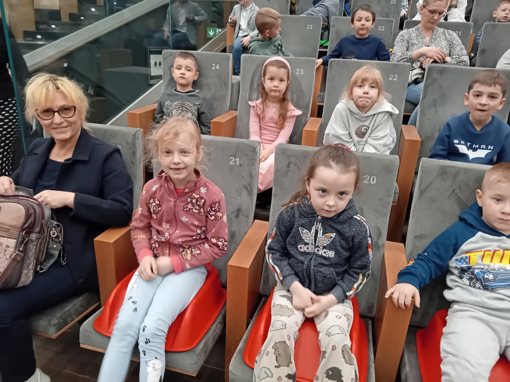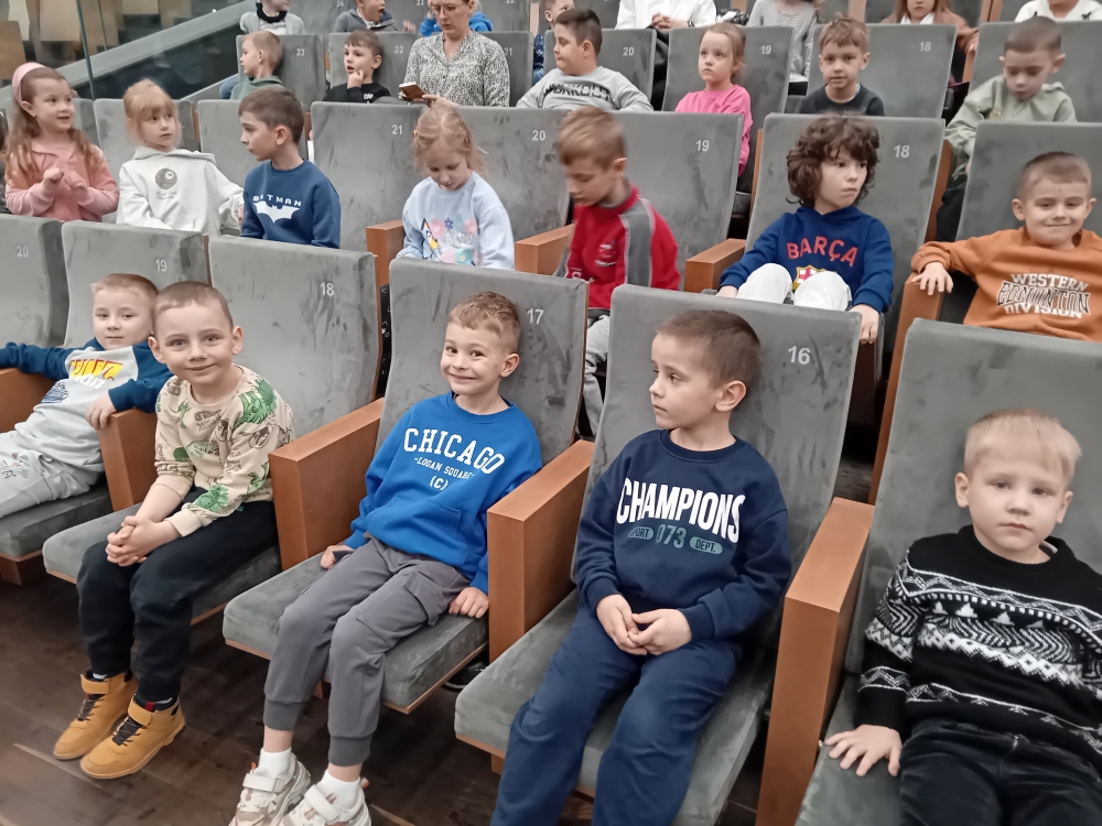 Przedszkolaki z grupy Smerfów oraz Pszczółek wybrały się do Centrum Sztuki Mościce na interaktywny spektakl zagadkowy o tematyce ekologicznej, pt.: „Detektyw Kot”.