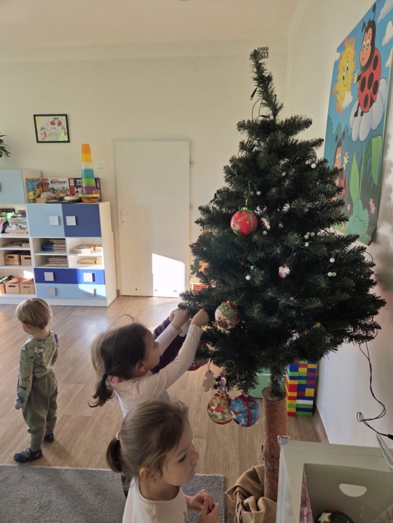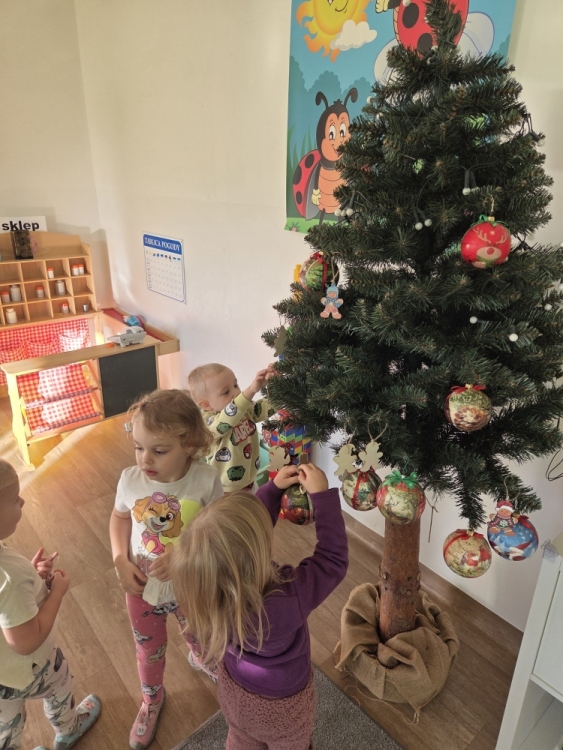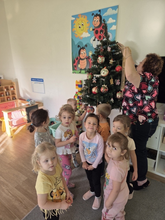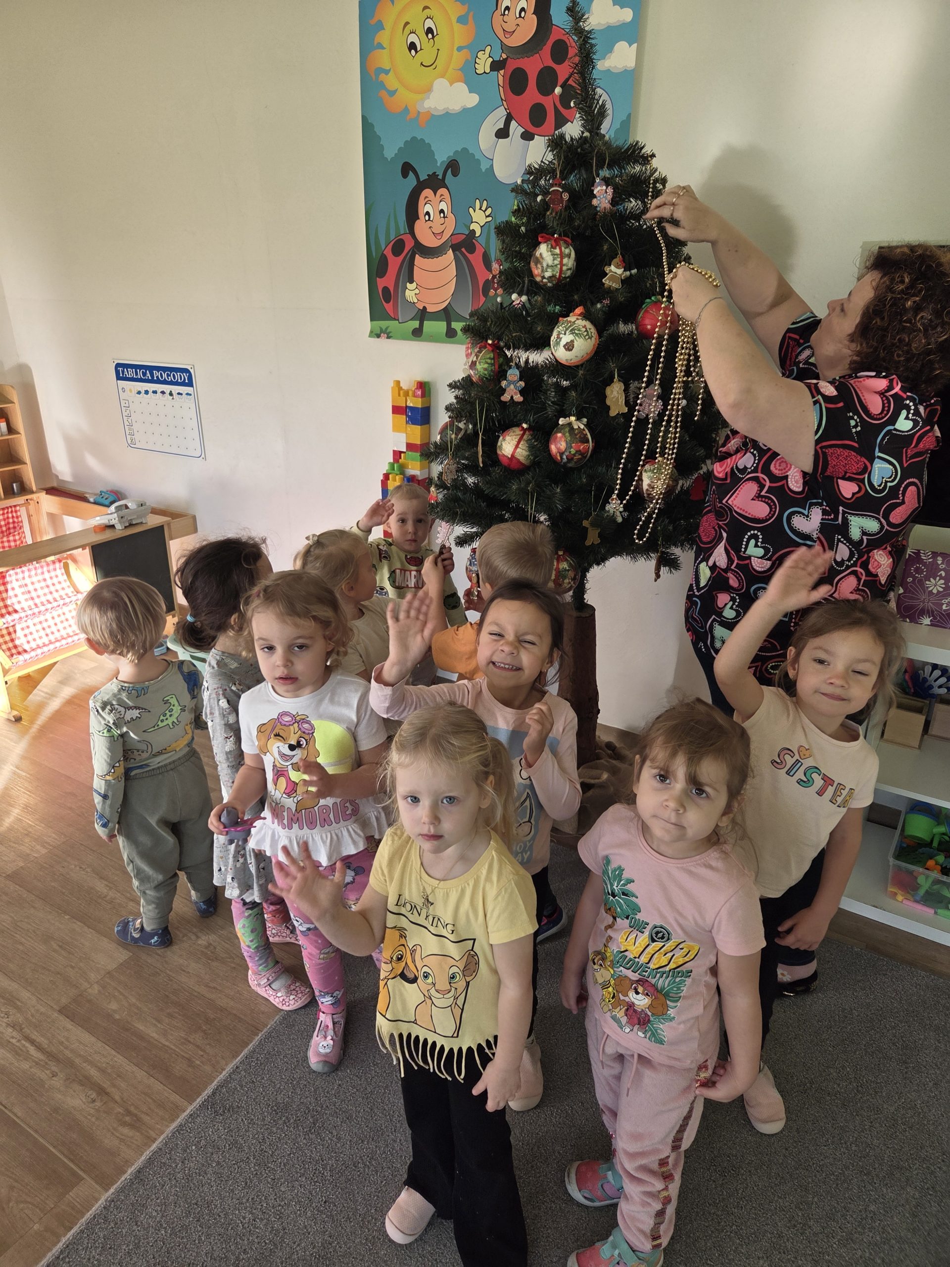 11 gru2025 0 Ubieranie choinki – STOKROTKI Galeria wydarzeń W oczekiwaniu na Świętego Mikołaja najmłodsze przedszkolaki z grupy „Stokrotek” wystroiły choineczkę na swojej sali.