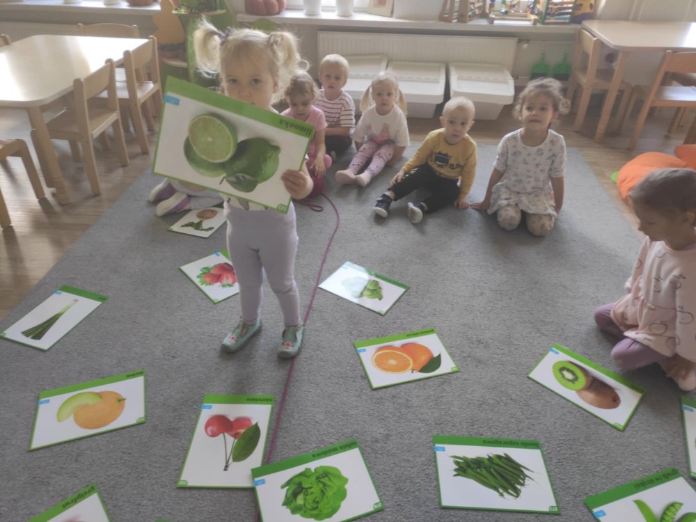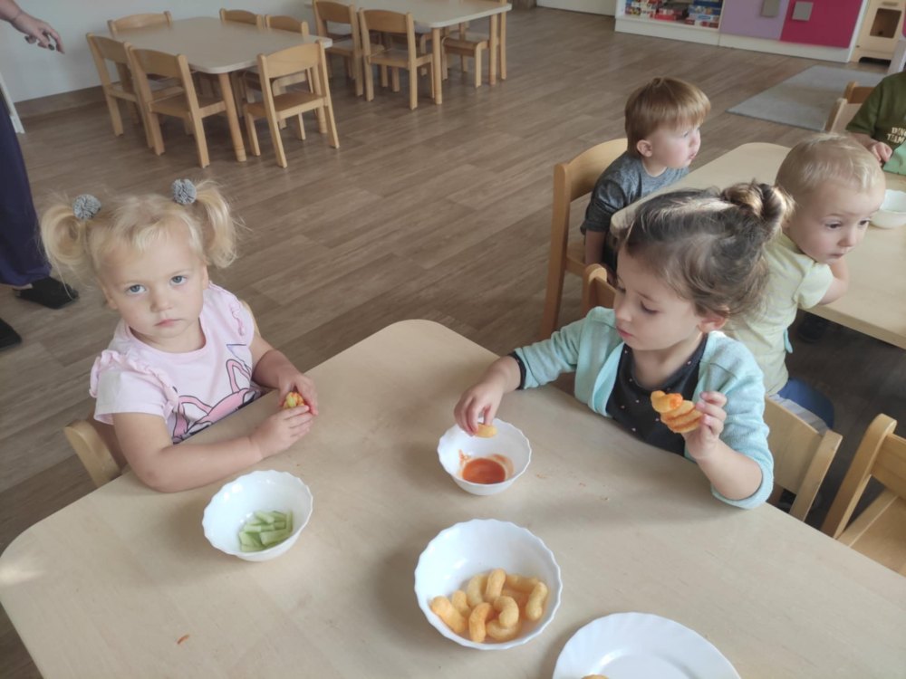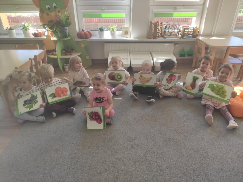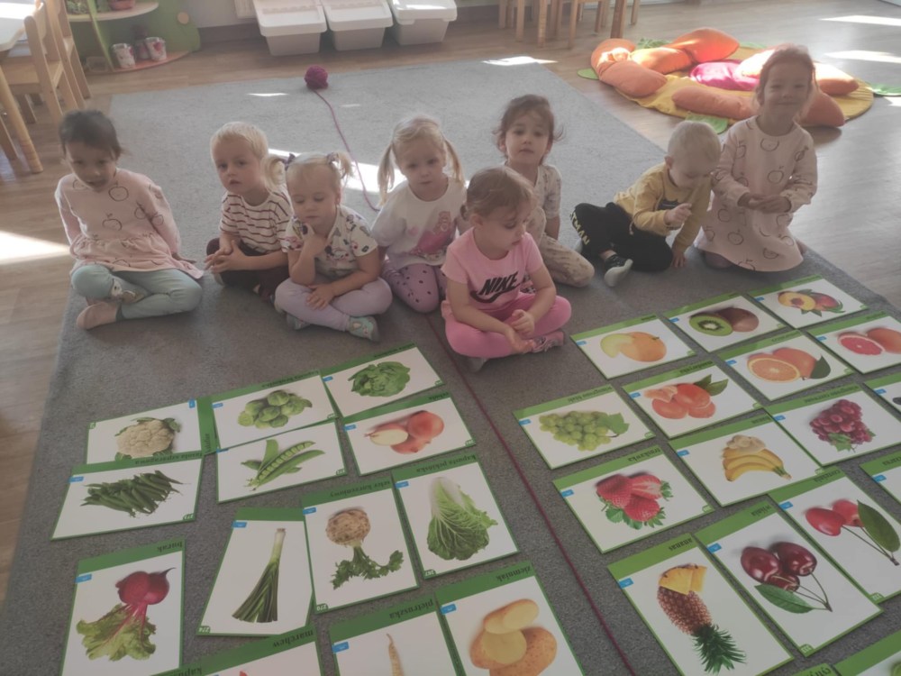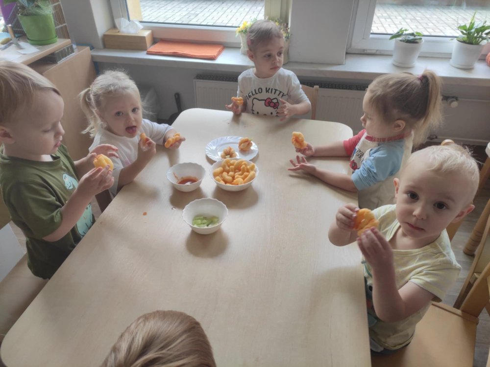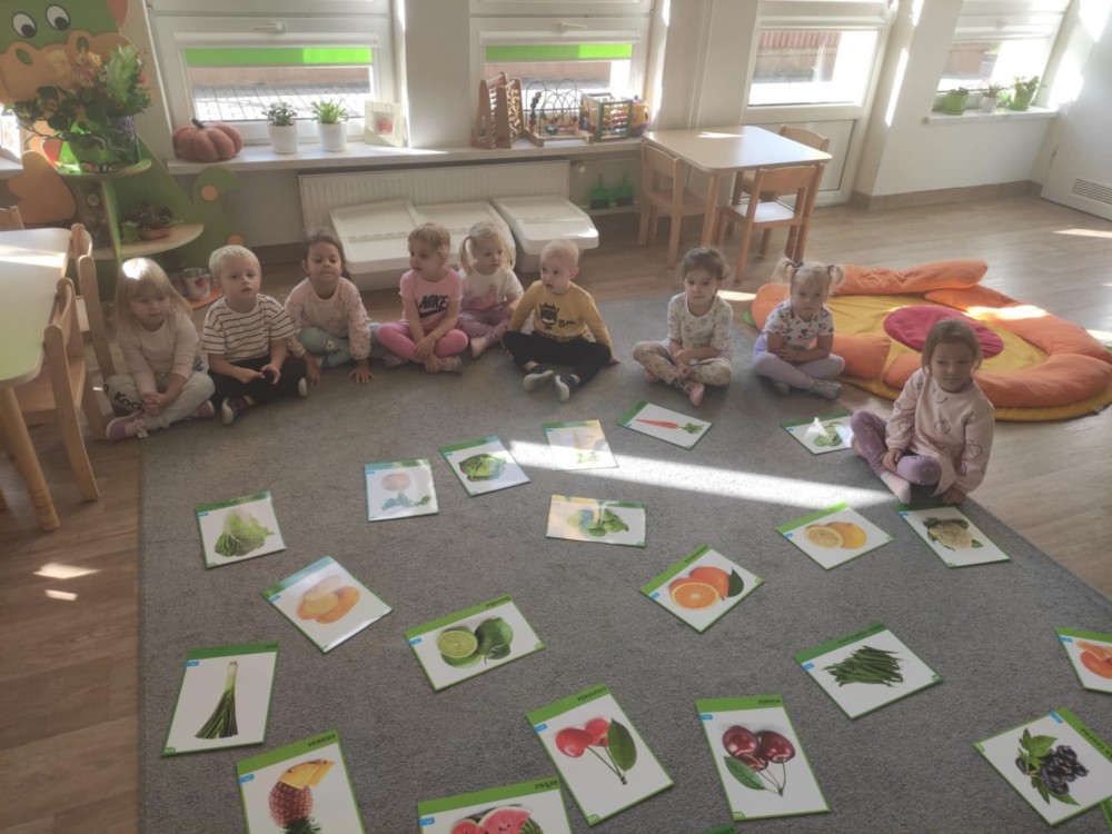 Dzieci z grupy Stokrotek podczas zajęć poruszały bardzo ważny temat jakim jest zdrowe odżywianie. Dowiedziały się jak ważne jest spożywanie owoców i warzyw w codziennej diecie. Nazywały warzywa i owoce, klasyfikowały wg jednej cechy, dokonywały wyborów ich zdaniem najsmaczniejszych warzyw i owoców, a także wykonały dynie z chrupek kukurydzianych.